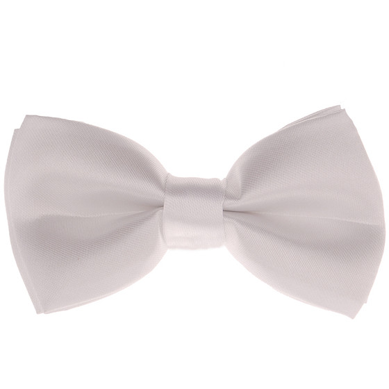 Glimmend witte vlinderstrik. De strik is gemaakt van een satijnachtige stof De strik heeft een verstelbaar bandje en wordt vast gemaakt met een clipje.