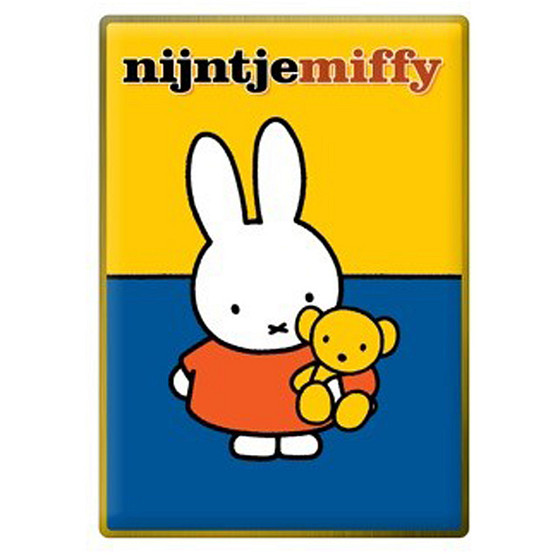 Wandbordje - Nijntje met Beer - Metaal - Geel/Blauw - incl. Bevestiging - 20,5x14,5cm