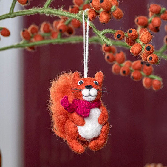 Wolvilt Hanger Eekhoorn Indian Summer - Burgundy - Fairtrade Homedeco - 11x5x8cm