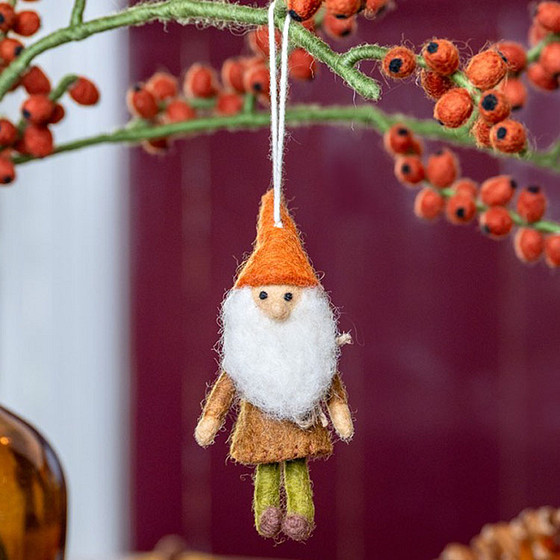 Wolvilt Hanger Kabouter Indian Summer - Bruin - Faitrade Homedeco - 15x6cm