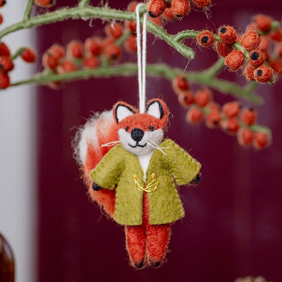 Wolvilt Hanger Vos Indian Summer - Lichtgroen - Fairtrade Homedeco - 13x9cm