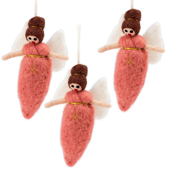 Wolvilt Hangers Engeltjes - Oudroze - Set 3 stuks - Fairtrade Homedeco - 13x7cm