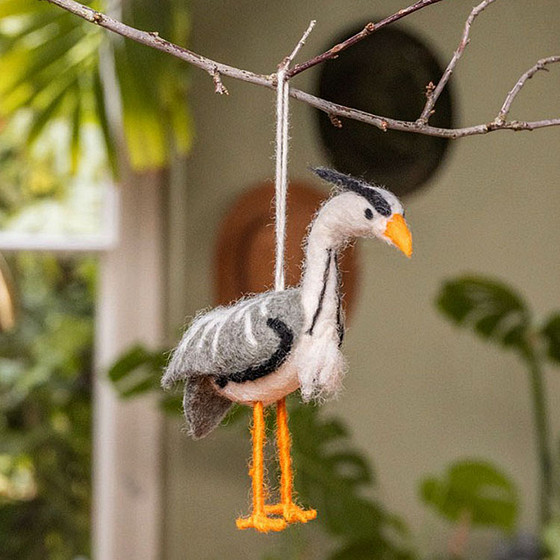 Wolvilt Vogel Reiger - Wit&Zwart&Grijs - Fairtrade Homedeco - 13x14x4cm
