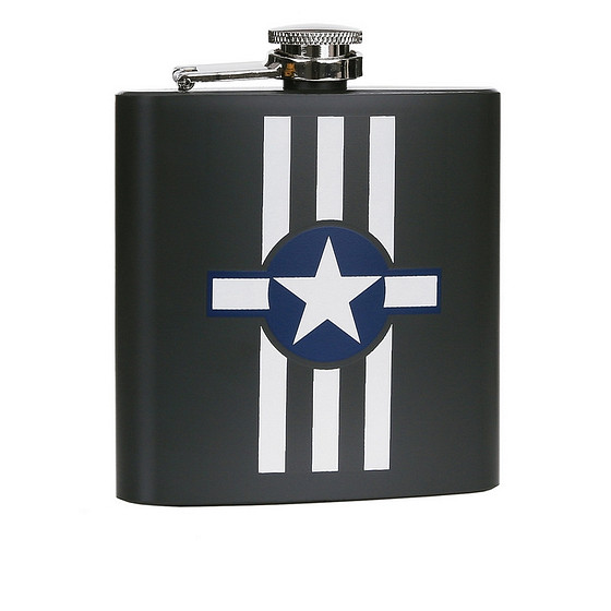Stoere legergroene RVS zakfles, op de fles staat een afbeelding van de USAF stripes. De heupflacon met schoefdop is van 100% roestvrijstaal. Het flesje neem je vanwege het handzame formaat makkelijk overal mee naar toe. Zo heb je jouw favoriete drankje altijd bij de hand. De flacon heeft een inhoud van 180 ml.