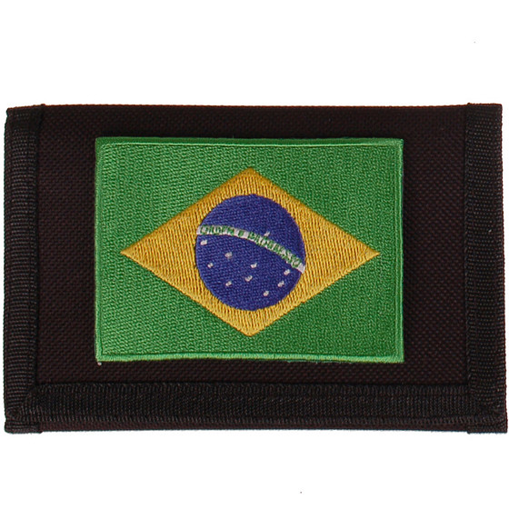 Zwarte klittenbandportemonnee 12x9cm - Applicatie 8x6cm vlag Brazilië