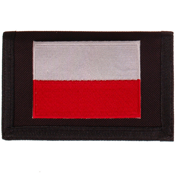 Zwarte klittenbandportemonnee 12x9cm - Applicatie 8x6cm vlag Polen