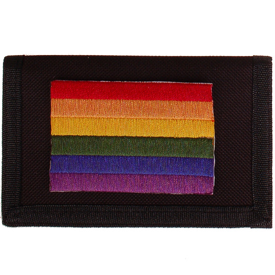 Zwarte klittenbandportemonnee 12x9cm - Applicatie 8x6cm vlag Regenboog