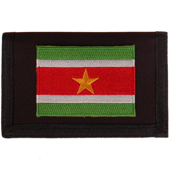 Zwarte klittenbandportemonnee 12x9cm - Applicatie 8x6cm vlag Suriname